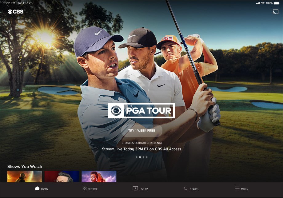 Challenge was to create a compelling layout, adaptable for successive tournaments on the 2020 PGA Tour, that would drive viewership and subscriber growth & retention.