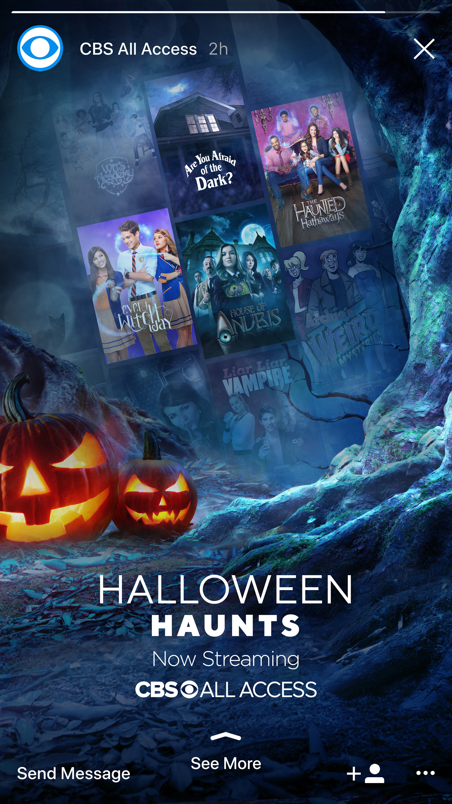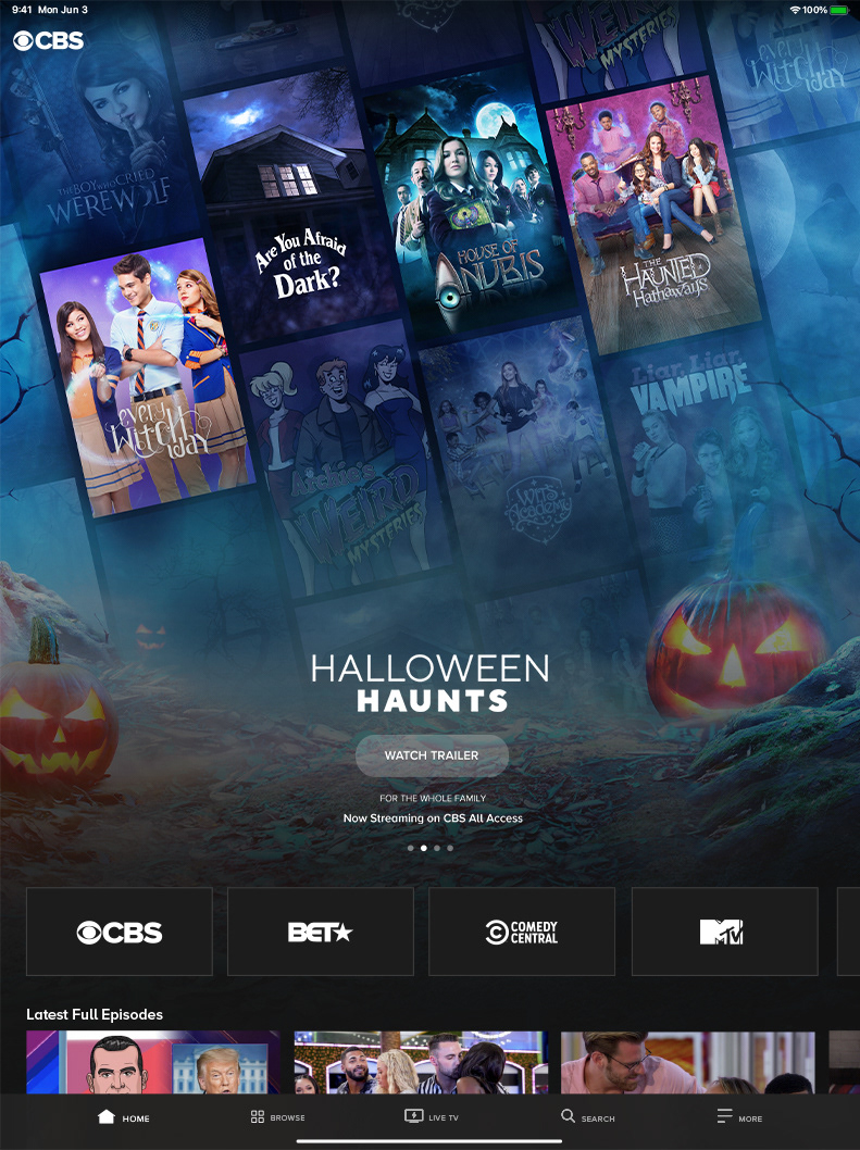 Hosted and OTT marquee campaign and paid social media campaign promoting Halloween-themed titles available to stream via CBS All Access.